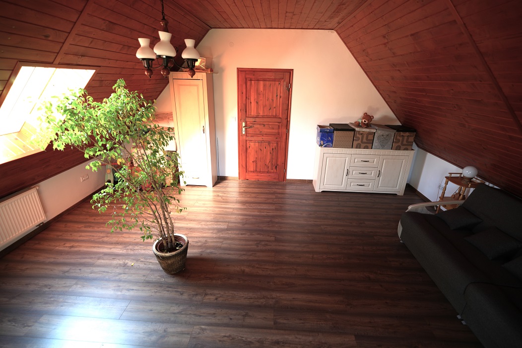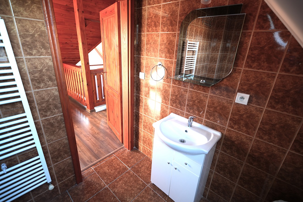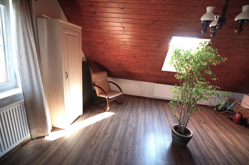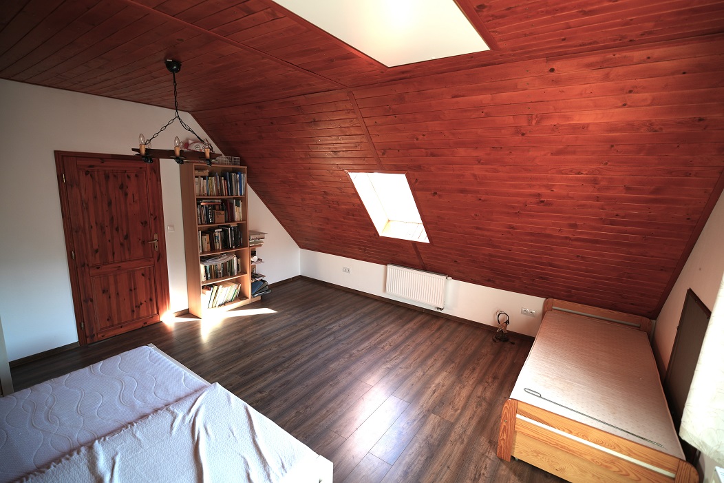 Na poschodí sa nachádzajú dve priestranné, nepriechodné izby, ktoré poskytujú dostatok súkromia. Chodba s posedením , samostatná toaleta, kúpelňa s vaňou. Povala je vybavená odkladacím priestorom.