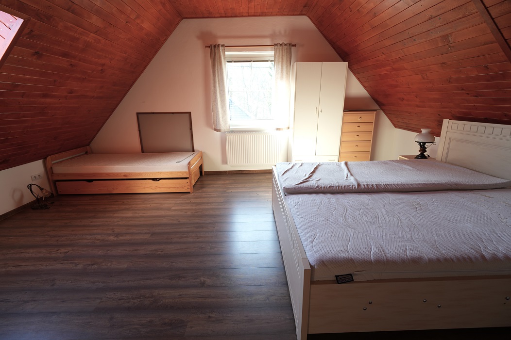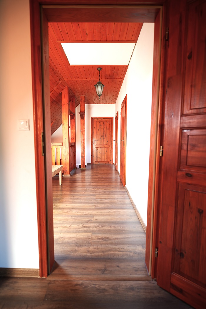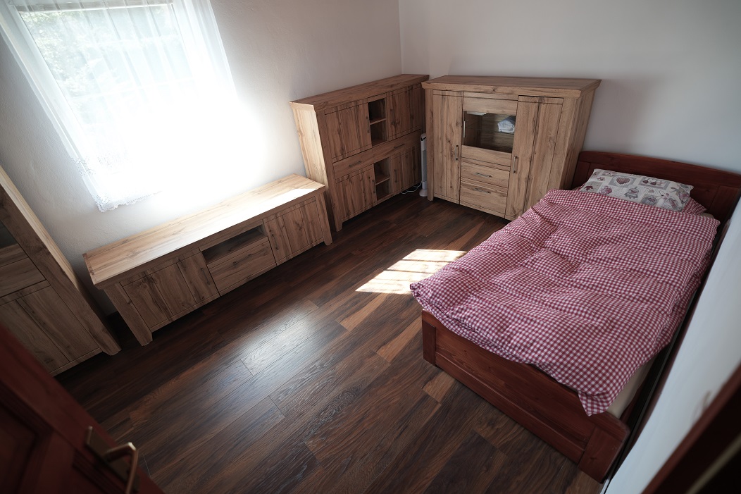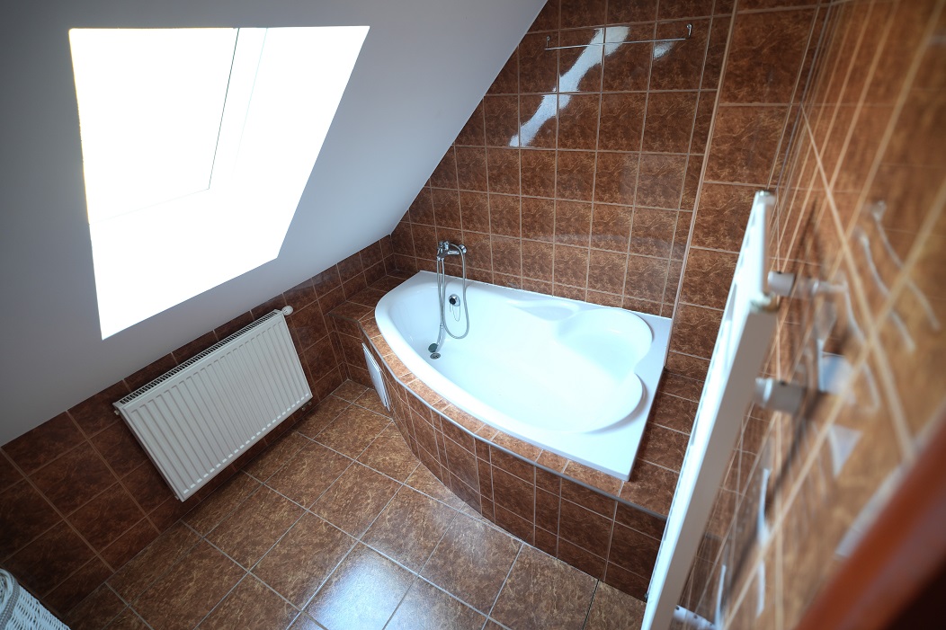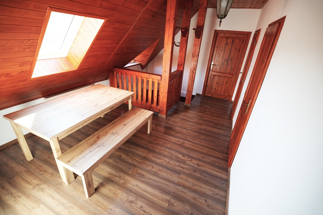 Na poschodí sa nachádzajú dve priestranné, nepriechodné izby, ktoré poskytujú dostatok súkromia. Chodba s posedením , samostatná toaleta, kúpelňa s vaňou. Povala je vybavená odkladacím priestorom.
